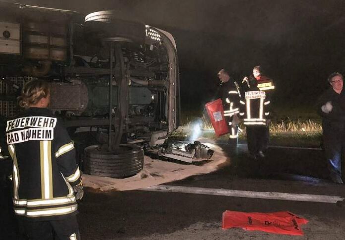 Ca să evite impactul cu un camion, şoferul român a tras stânga de volan, a trecut prin parapeţii despărţitori dintre sensuri şi s-a răsturnat pe cealaltă parte a şoselei, lovind şi un utilaj.