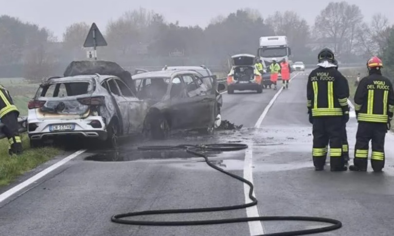 Impactul a fost extrem de violent. Mașina româncei și BMW-ul au luat foc aproape imediat. Ocupanții celorlalte două vehicule au reușit să iasă singuri și au fost răniți, dar nu grav.